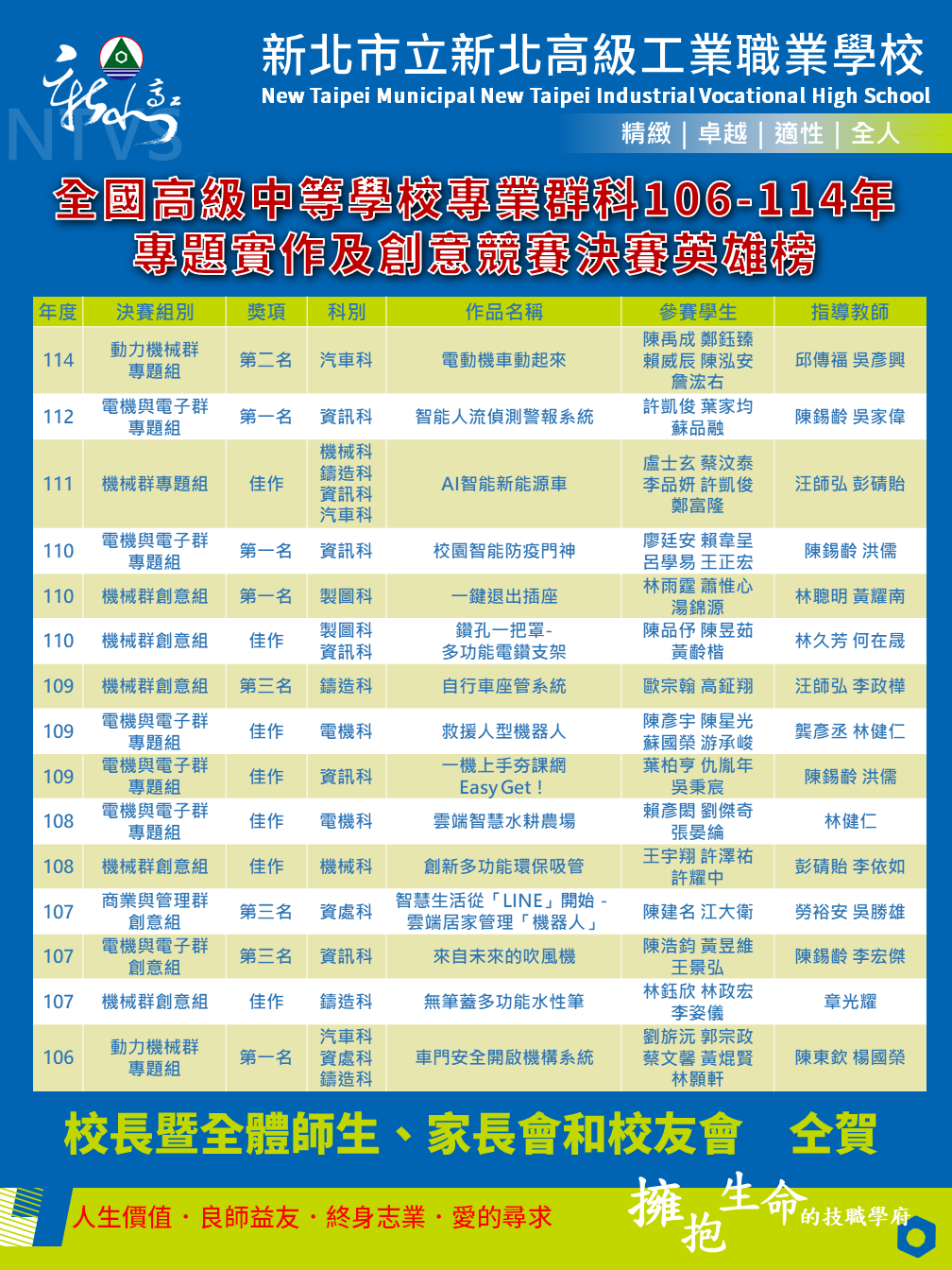 地址:236新北市土城土城區學府路一段241號 實習主任電話: (02)22612483#60 實習主任信箱: 60@apps.ntvs.ntpc.edu.tw ************************************************** 《徵才就業資訊》請洽就業輔導組 電話: (02)22612483#9562 #62 |